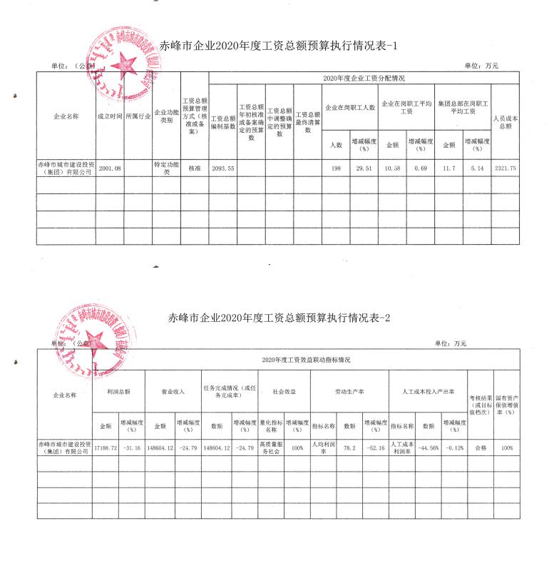 赤峰市城建集團(tuán)2023年度工資總額清…