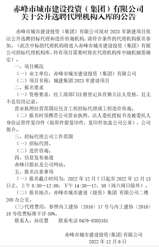 下一篇:關(guān)于赤峰市城市建設(shè)投資(集團(tuán))有限公司選聘建設(shè)項目可行性研究、社會穩(wěn)定風(fēng)險評估、環(huán)境影響評價編制單位入庫公告